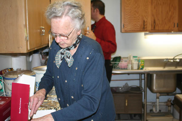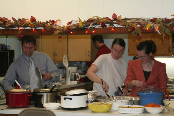 the kitchen crew. Although most everyone in the church works for the
